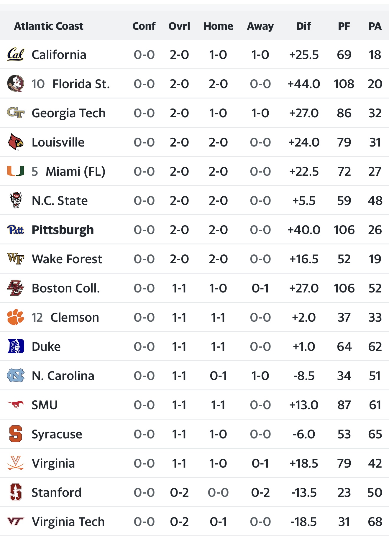 Overall Record: 2-0 | ACC Record: 0-0 | Rank: n/a