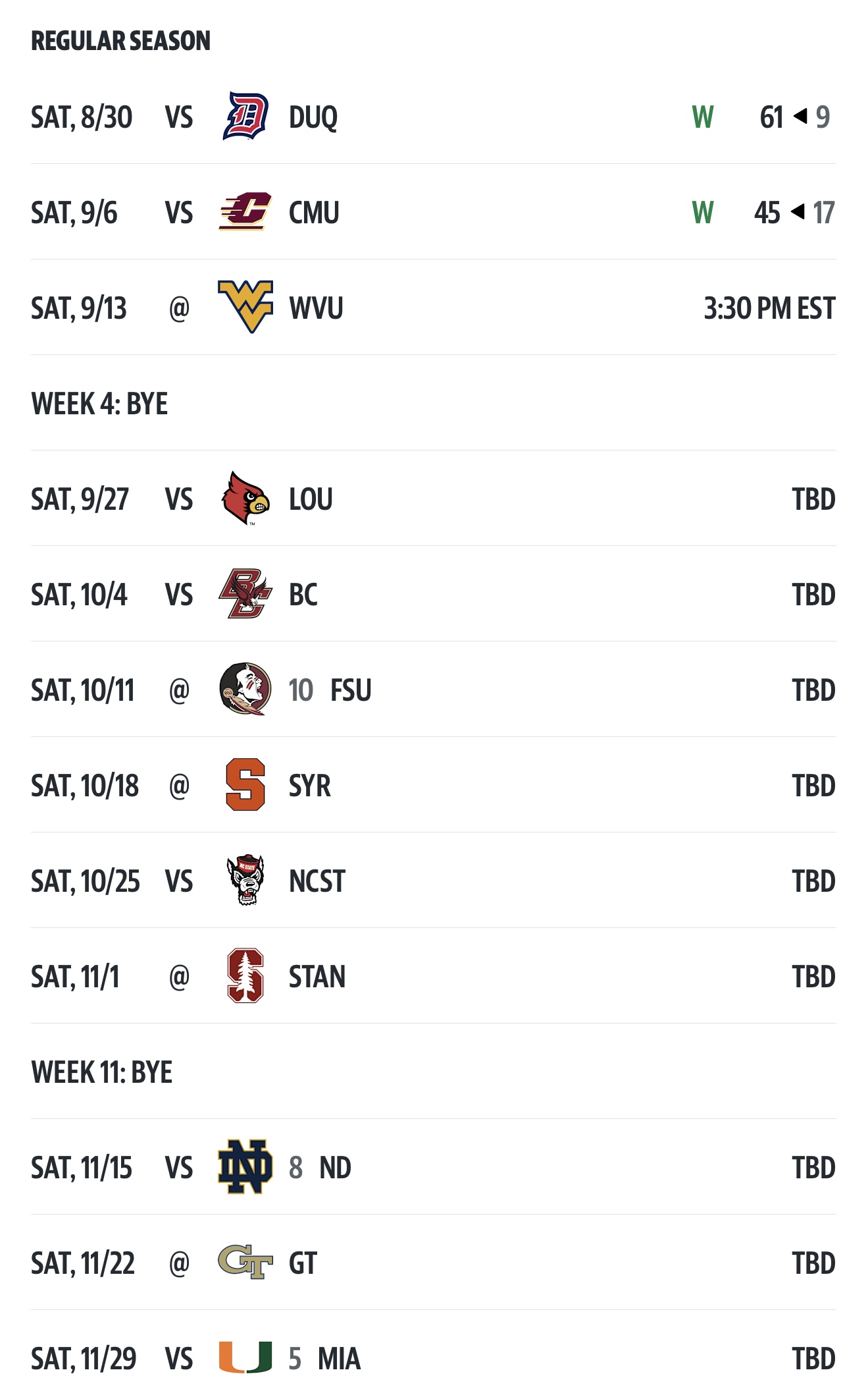Last Game: September 14th, 2024 (Pitt 38 WVU 34)