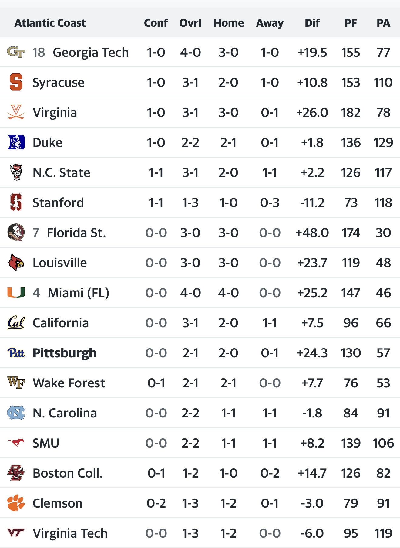 ACC Standings