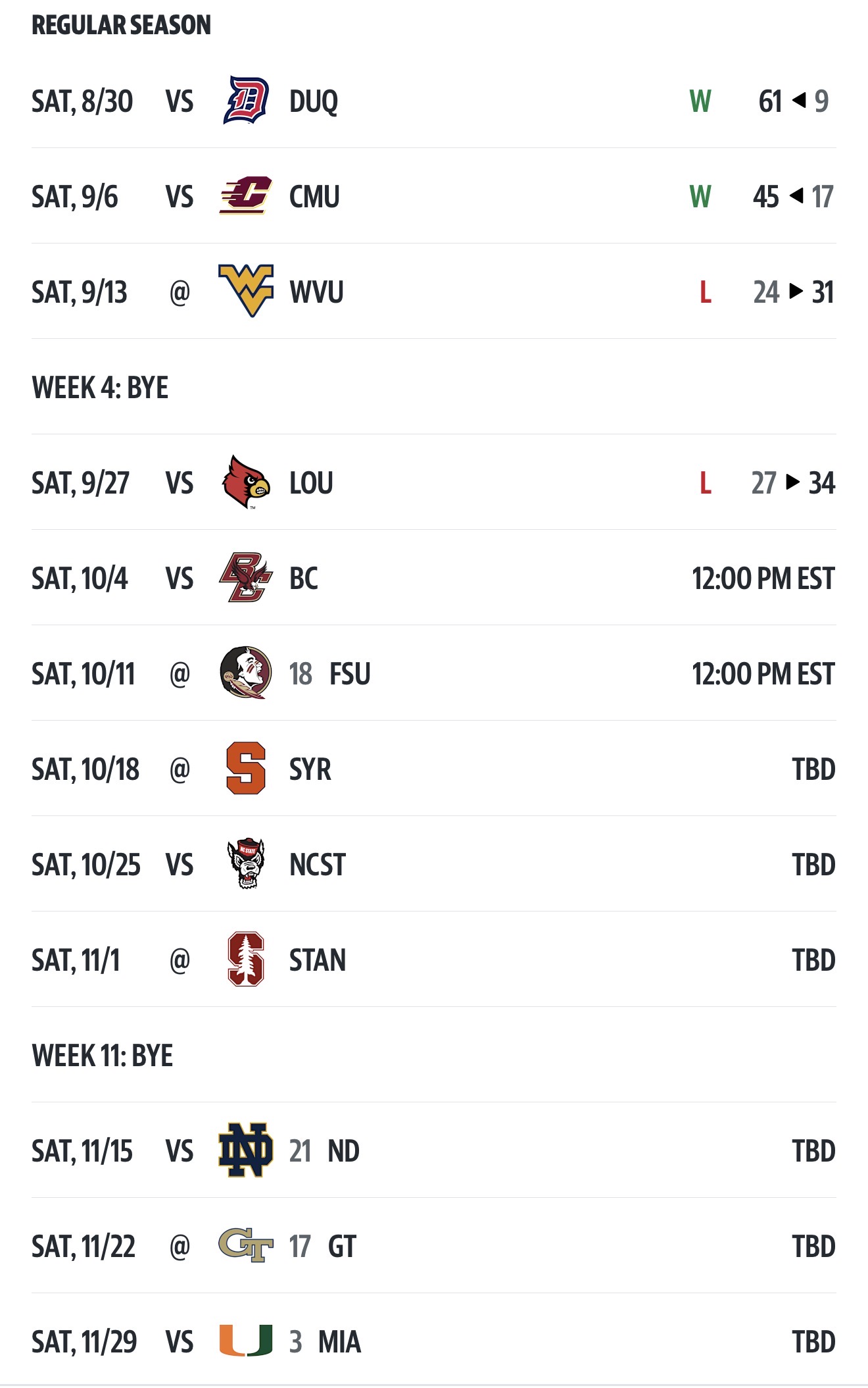 Last Game: Nov. 30, 2024 (Boston College won, 34-23)
