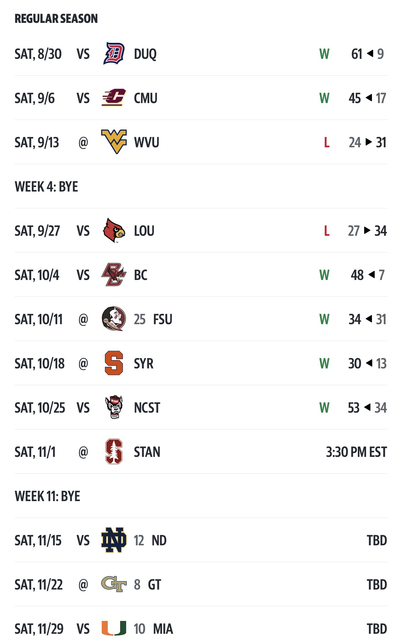 Previous Game: Pitt 53 N.C. State 34