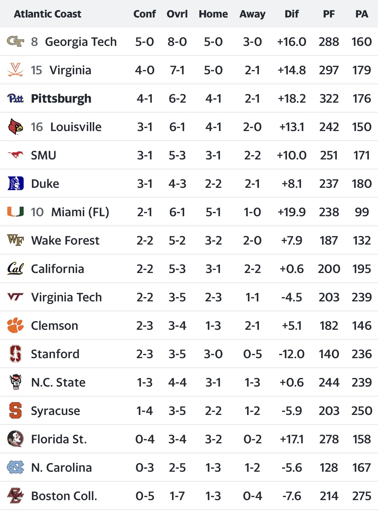 ACC Standings